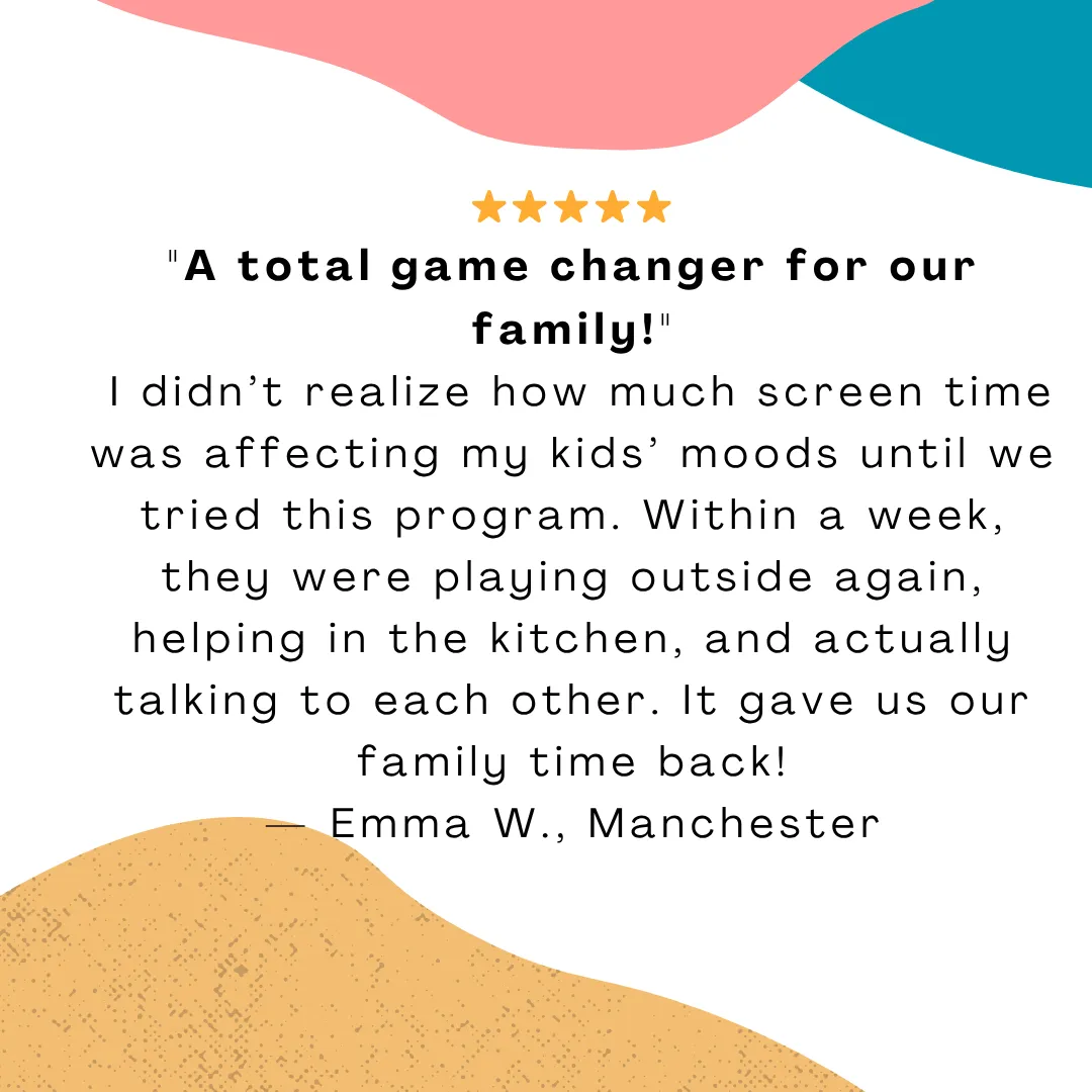 While other parents struggle with escalating screen battles, you'll be reconnecting with your child using our proven system.